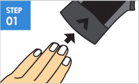 옆의 구멍에 손가락이 들어가도록 하여 V마크쪽에서부터 손을 넣습니다.